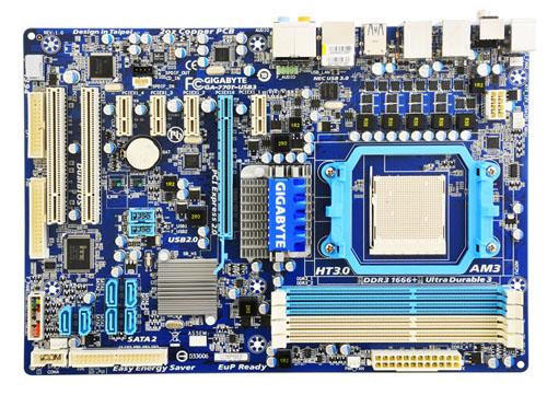GA-770T-USB3はAMD 770チップセットを搭載したATX規格、ソケットAM3対応のマザーボードです。AMD Phenom IIプロセッサ、AMD Athlon IIプロセッサ、AMD Sempronプロセッサ、DDR3規格メモリ、HyperTransport 3.0テクノロジ、USB 3.0、PCI Express 2.0グラフィックインターフェースに対応します。