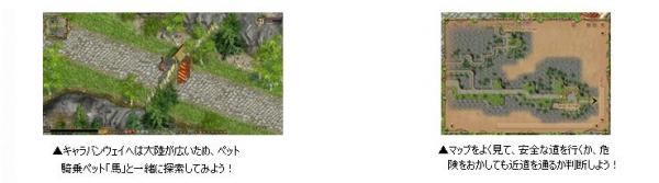 広大な面積を誇る「キャラバンウェイ」は、大陸を横断するのに徒歩で5分程度かかるため、同日に実装される騎乗ペットの「馬」を利用して颯爽と駆け回るのがいいかもしれません。