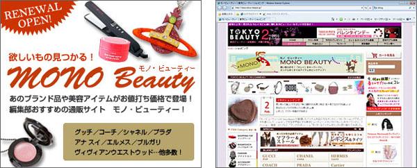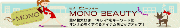 『Mono Beauty』(モノビューティー)は、好きを通りこして、ショッピングを生き甲斐とする東京ビューティー・スタッフが「キレイ」をキーワードに、ファッション、雑貨、コスメなど、“オンナのほしい!心”をくすぐるアイテムをたくさん取り揃えたショッピングサイト。