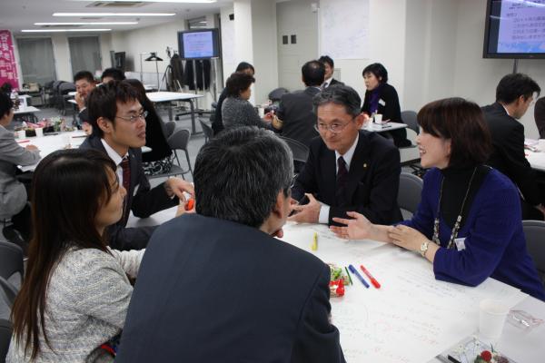 3氏の想いを肌で感じることのできる、市民創発を促すワールドカフェの手法は、企業においても、社員の情報共感や、会社の未来を語り合う場に応用することが出来る。