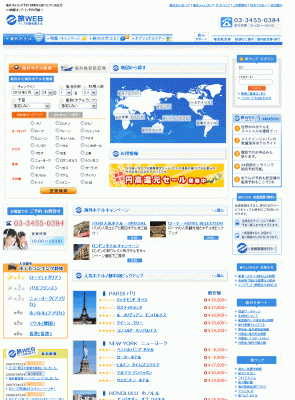 今回のリニューアルオープンでは、トップページのデザインリニューアルにより、画面幅の拡大、「地図から探す」コーナーの新設、「キャンペーン情報」や「人気の海外人気都市ランキング」など人気が高いコンテンツの拡張を行い、サイトの利便性を改善いたしました。