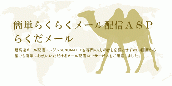 「らくだメール」は、メール配信を初めて行う方でも簡単に操作でき、月々の料金も安心できる超高速メール配信エンジンSENDMAGICと連携したメール配信ASPサービスです。