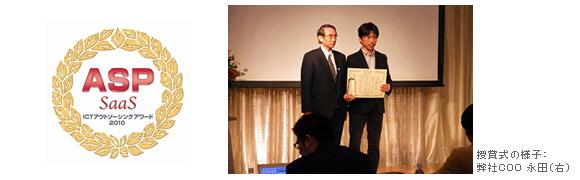 「第4回:ASP/SaaS/ICTアウトソーシングアワード2010」は、昨今、急激に拡大しているASP・SaaS・ICT アウトソーシング市場において、これらのビジネスモデルや技術が社会に貢献するものとするため、また各ベンダー経営者・営業・企画・技術者の意欲向上を目的として、特定非営利活動法人ASPIC(※)の運営により開催されています。