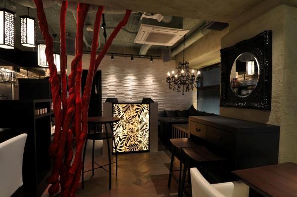 全面ガラス張りのエントランスから長めに伸びたカウンター席、奥には黒色のシャンデリアにオーダーメイドの黒ソファーを合わせたナイトタイムにはうってつけの広々スペース、ちょっとしたクラブに引けを取らない音響システムを組んだDJブース、また接待・合コン・密会(!?)には必須なプライベートルーム的個室まで。あらゆるニーズに応えるダイニングカフェを新提案!