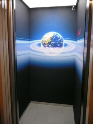 (株)イオタが販売する、エレベーターの内壁に取りつけられるウォールカバー。