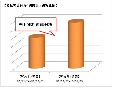 さらに、2009年12月22日にたばこの増税が発表された前後4週間で、電子タバコの売上個数を比較したところ、発表前よりも150%伸長しております。このことから、増税も喫煙者の禁煙意識を高める大きな要因の一つと言えます。