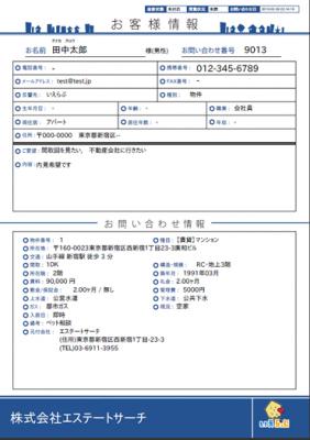 顧客情報やお問い合わせ内容をPDFファイルでシート化し、印刷できます。インターネットからの反響に対して、紙ベースでの顧客対応をする際に有用な機能となっております。