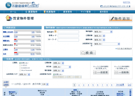 物件に、各クライアント企業で利用している管理コード(自社管理番号)を登録する機能や、登録物件のフリーワード検索などの機能を追加。利用状況などのグラフ表示なども搭載し、ユーザビリティ向上を図っております。