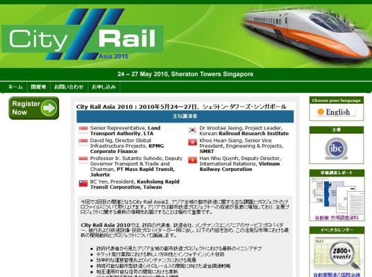 「City Rail Asia 2010」の情報を提供するとともに、会議の参加のお申し込みを承っております。