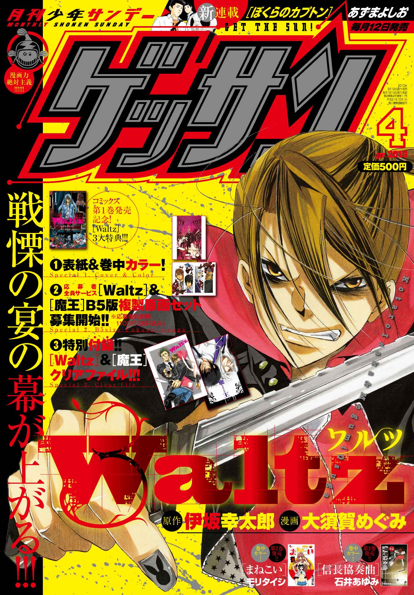 『ゲッサン ~月刊少年サンデー~』は2009年5月に創刊された本格少年誌です。“漫画力絶対主義”の旗の下、あだち充氏の新作連載『QあんどA』をはじめとする大人気ラインナップを誇り、若き新進作家による話題作も、多数連載中!『Waltz』は2009年11月号より連載を開始し、早くも少年漫画界の話題を独占中!(毎月12日発売。税込定価500円)