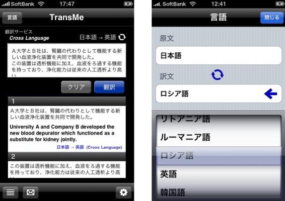 ※ TransMeは、インターネット通信を通じて提供する機械翻訳サービス・アプリケーンョンです。 iPhone/iPod Touchがインターネットに接続できない環境ではご利用いただけません。