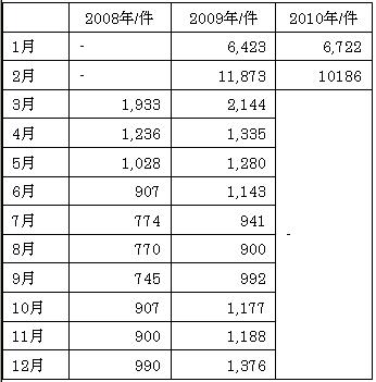 (2008年3~12月、2009年1~12月、2010年1~2月)(件数)