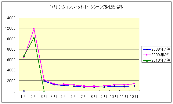 調査の結果、「バレンタイン」関連商品の落札数は、