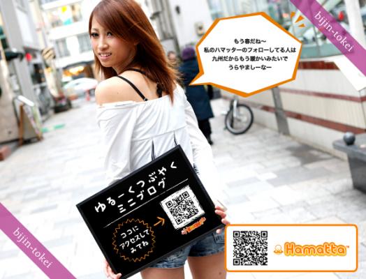 今回のタイアップでは、ハマッター(リアルタイムコミュニケーション)と美人時計(美女が時間をお知らせする)、双方の『リアルタイム性』を活かし、美人時計では美女がつぶやき、ハマッター内では美人時計出演女性が実際につぶやいていくという企画を実施しています。