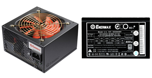 ENERMAX エコ80+IIシリーズ EES400AWTII(出力:400W)は、ATX12V Ver.2.3に準拠した、80PLUS認証取得の高効率電源です。超静音120mm速度自動コントロール機能付きツイスターベアリングファンMAGMA搭載、日本メーカー製電解コンデンサ搭載、8重の保護機能を搭載しています。