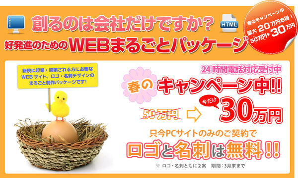 有限会社プリッキア(横浜市港北区、代表取締役社長:熊切雄三、以下プリッキア)は、2010年3月10日、新規法人向けホームページ制作サービス「ホームページたまご」を開始いたしました。そしてこの度、サービス開始を記念しまして、新規創業者を応援する春のキャンペーンを開始いたしましたので、お知らせいたします。
