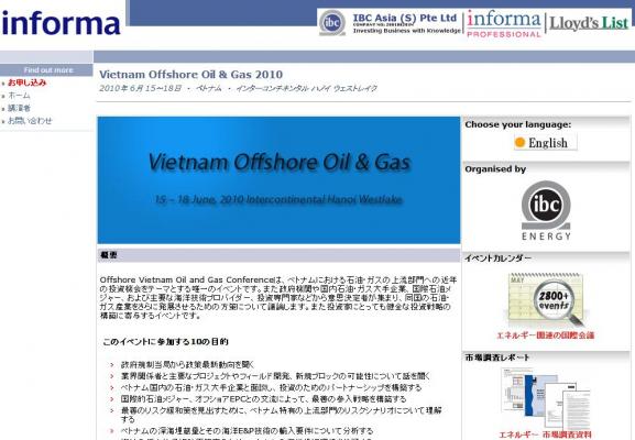 「Vietnam Offshore Oil & Gas 2010」の情報を提供するとともに、会議の参加のお申し込みを承っております。