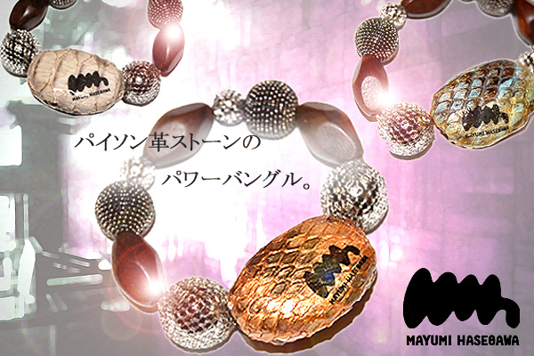 このブレスは、心が落ち着くように・・・と天然素材である革(蛇革・ダイヤモンドパイソン)・木など