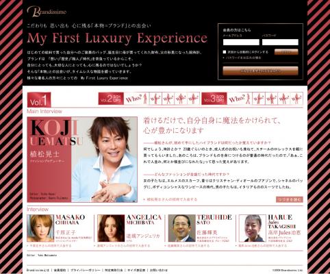 こだわりも 思い出も 心に残る「本物=ブランド」との出会い をテーマに、植松晃士さん(ファッションプロデューサー)、YOUさん(女優、タレント)など様々なジャンルの著名人の方々の「本物=ブランド」との初めての出会いを紹介していくことで、ブランド商品のすばらしさを伝えていきたいと考えています。