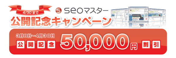 seoマスターをお得にご利用いただけるチャンスですので、ぜひこの機会をご活用下さい。