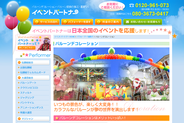 この度、全国を中心にイベントを展開する、株式会社パートナースケッチが同社大道芸人似顔絵師等派遣出張サービスサイト「イベントパートナー(http://www.event-partners.net/)」内で新たなサービスとして、イベント会場の「バルーンデコレーションサービス(http://www.event-partners.net/deco/)」を開始することとなりました。