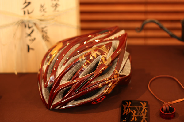 サイクルモードでも好評を博した漆塗りのフレームやヘルメット。関東では他に見ることのできないこれらのアイテムまでmawareギャラリーに常設展示。色や蒔絵をイージーオーダーいただけます。