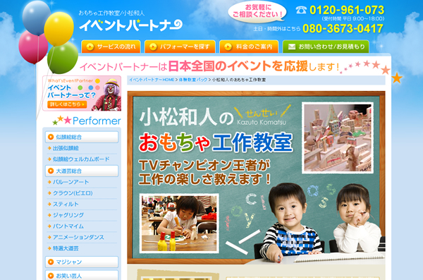 ・日本全国のイベント会場にバルーンアーティストや、木工工作の先生を派遣し、子供たちとイベントを行います。