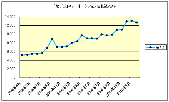 直近の2010年2月の落札数は、調査開始した2008年3月の落札数と比較して243%伸びていることがわかりました。