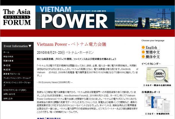 株式会社グローバル インフォメーションでは、皆様の利便性を図る為に、日本語、韓国語、英語、中国語で「Vietnam Power (ベトナム電力会議)」の情報を提供するとともに、会議の参加のお申し込みを承っております。