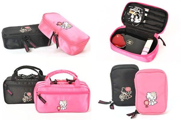 世界的なキャラクター、ハローキティとのコラボしたメイクポーチシリーズです。各ポーチには鏡を見つめてメイクする、ちょっぴり大人なキティの姿が。また、トレードマークのリボンのかわりに、スワロフスキーをあしらったお花のカチューシャがデザインされています。