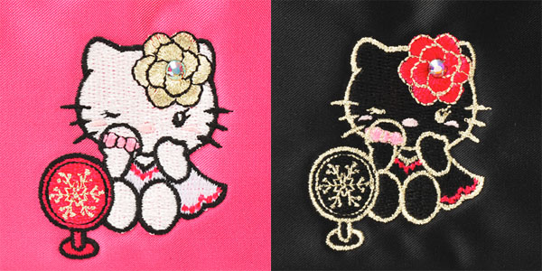 世界的なキャラクター、ハローキティとのコラボしたメイクポーチシリーズです。各ポーチには鏡を見つめてメイクする、ちょっぴり大人なキティの姿が。また、トレードマークのリボンのかわりに、スワロフスキーをあしらったお花のカチューシャがデザインされています。
