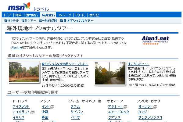 世界中のオプショナルツアー予約を専門とするアランと、ポータルサイトとしての長い運用実績を持つMSNは、世界中の旬な最新情報をもとにユーザーの実生活に役立つサービスを提供するという共通項をもっています。