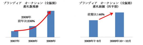 しかしながら、ブランディアオークション(全販路)の落札数は2009年前年比236%、
