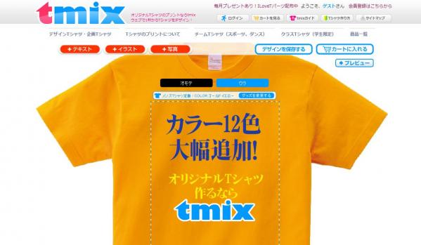 ウェブでかんたんデザイン!オリジナルTシャツデザインサイトtmix(ティーミックス)