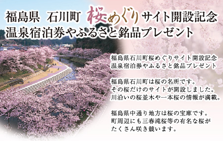 「福島県 石川町 桜めぐり」サイトをクリックし、お気に入りの桜を1つ以上選び郵便はがきでお送り下さい。地元の温泉宿泊券や手に入りづらいふるさと銘品を31名の方へプレゼント致しますのでご希望の方は下記「Qlep福島」の応募要項をご覧の上ご応募下さい。