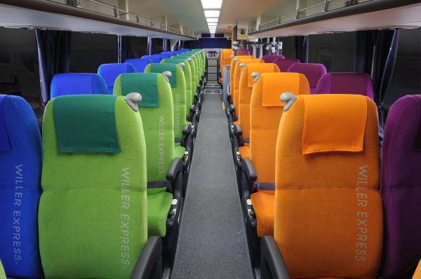 2階建てバスに出来るだけ多くのシートを設置することにより、低価格での提供を実現します。また、カラフルなシートカラーを採用し、シートの清潔感を演出します。
