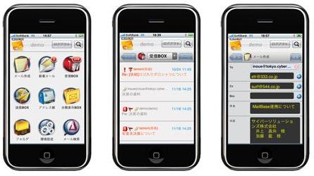 今回当社のWebメールシステム・CyberMailがiPhoneに対応したことにより、ビジネスドメインのメールアドレスが利用できるのでオフィス内のPCと同じメールの閲覧や操作が可能になります。また、iPhoneにメールのデータが残る事も無くなり、紛失、盗難等による情報漏洩のリスクが回避できるようになります。