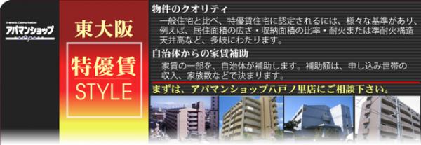 高いクオリティを割安で借りられる特優賃に指定された物件に、八戸ノ里店は今回スポットを当てています。