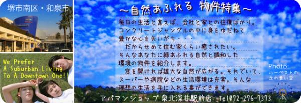 泉北深井駅前店では、緑と便利さが特徴の物件の中でも特に環境の優れた物件を、堺市南区・和泉市を中心に特集としてご用意しました。