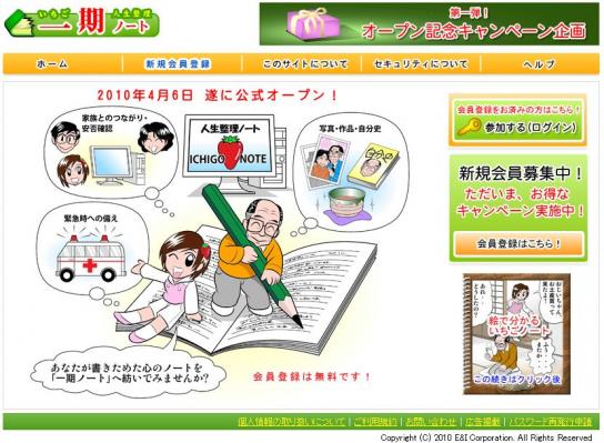 人生整理ノート『いちご(一期)ノート』は、SNS(ソーシャル・ネットワーキング・サービス)機能を有する「エンディングノート」のWebシステム版で、国内初のサービスです。