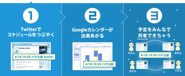 ・ツイートするだけでスケジュールを登録できるため、Twitter上でのスケジュール調整に便利です。