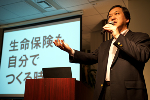 イベントは三部構成とし、第一部では、ITジャーナリストの林信行氏による「林流IT DIY術」、心理学ジャーナリストの佐々木正悟氏による「1日24時間のDIY」の講演に続き、当社社長の澁谷も登壇し、昨年11月にリニューアルした当社のWeb必要保障額シミュレーションツール※『組み立てナビ』(https://www.diy.co.jp/navi/main.aspx)のデモンストレーションを行うなどし、「生命保険もDIYする時代」を講演いたしました。