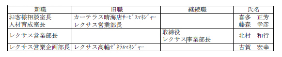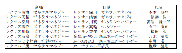 ・レクサス事業部に、「レクサス営業企画部」を新設し、レクサス営業部の「企画グループ」及び