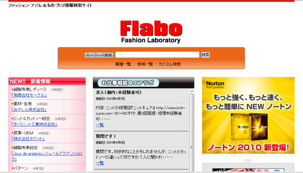 現時点ではファッション・アパレルのものづくりに特化した情報検索ツールがないためファッション業界関係者はもちろん一般のファッションに興味のある層にとっても便利なサイトになっています。業種別、地域別に探すことができるほか、カスタム検索により条件を絞った検索が可能です。また情報検索だけでなく、ファッションに関わるさまざまな質問・疑問を解決するスペースを設けていることも特徴のひとつです。