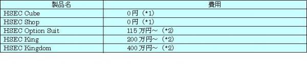 製品価格については以下参照願います。