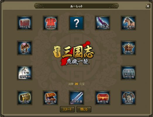 運がよければ名将や武将装備などレアアイテムが当たる事もあるお得なルーレットとなります。