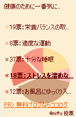 「健康のために一番気にかけていることは何ですか?」という質問に対する回答を、ユーザーに5つの回答(「栄養バランスの取れた食事」「適度な運動」「十分な睡眠」「ストレスを溜めないこと」「お風呂にゆっくり入ること」)から選択してもらう