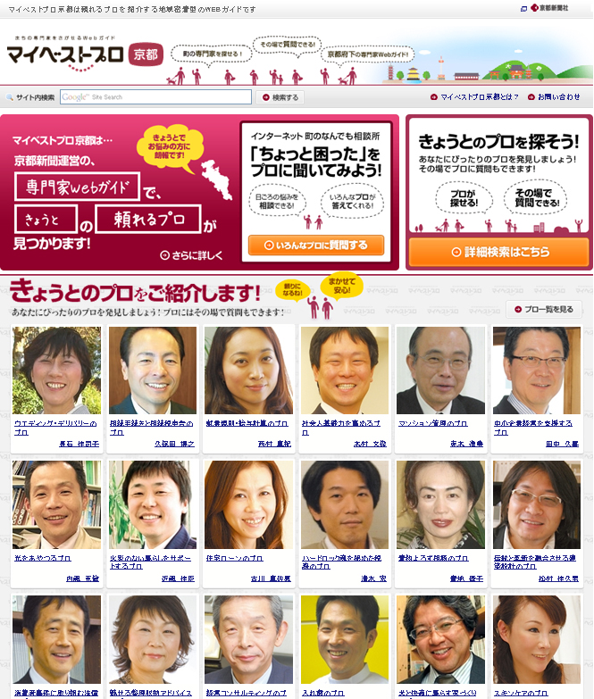 ・京都府・滋賀県を対象としたサイトのため、消費者は地元の専門家を見つけやすく、専門家は商圏内の顧客にアピールできる