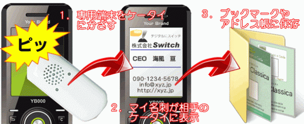 携帯電話に直接表示~保存させる仕組みなので、紙名刺のように容易に捨てられるリスクが少なく、Webベースのシステムを採用しているので、メールマガジンや携帯クーポンとの連動が容易です。
