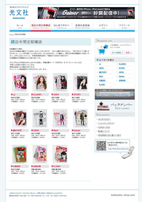 今回構築したオンラインショップでは、光文社が発行する雑誌の年間定期購読が可能となっております。